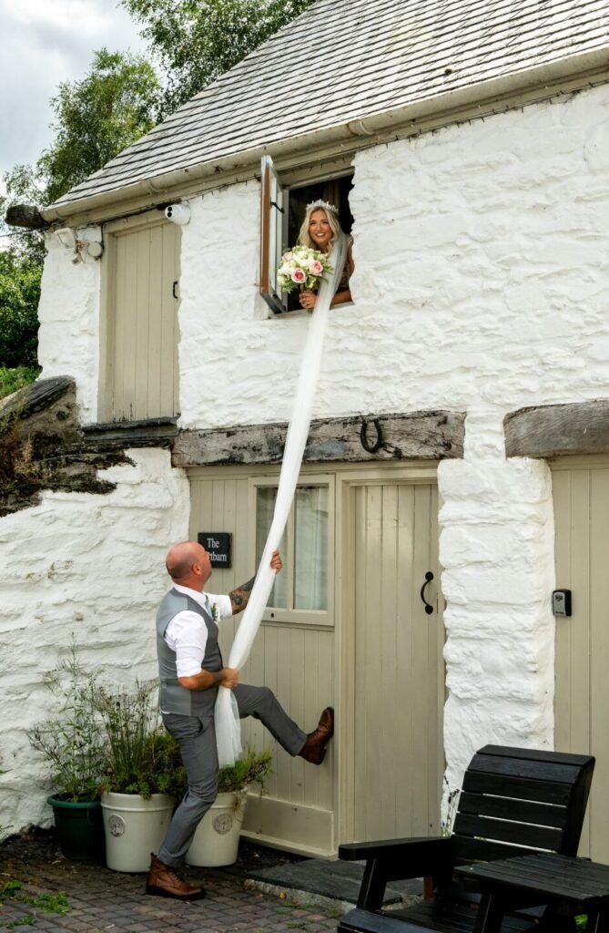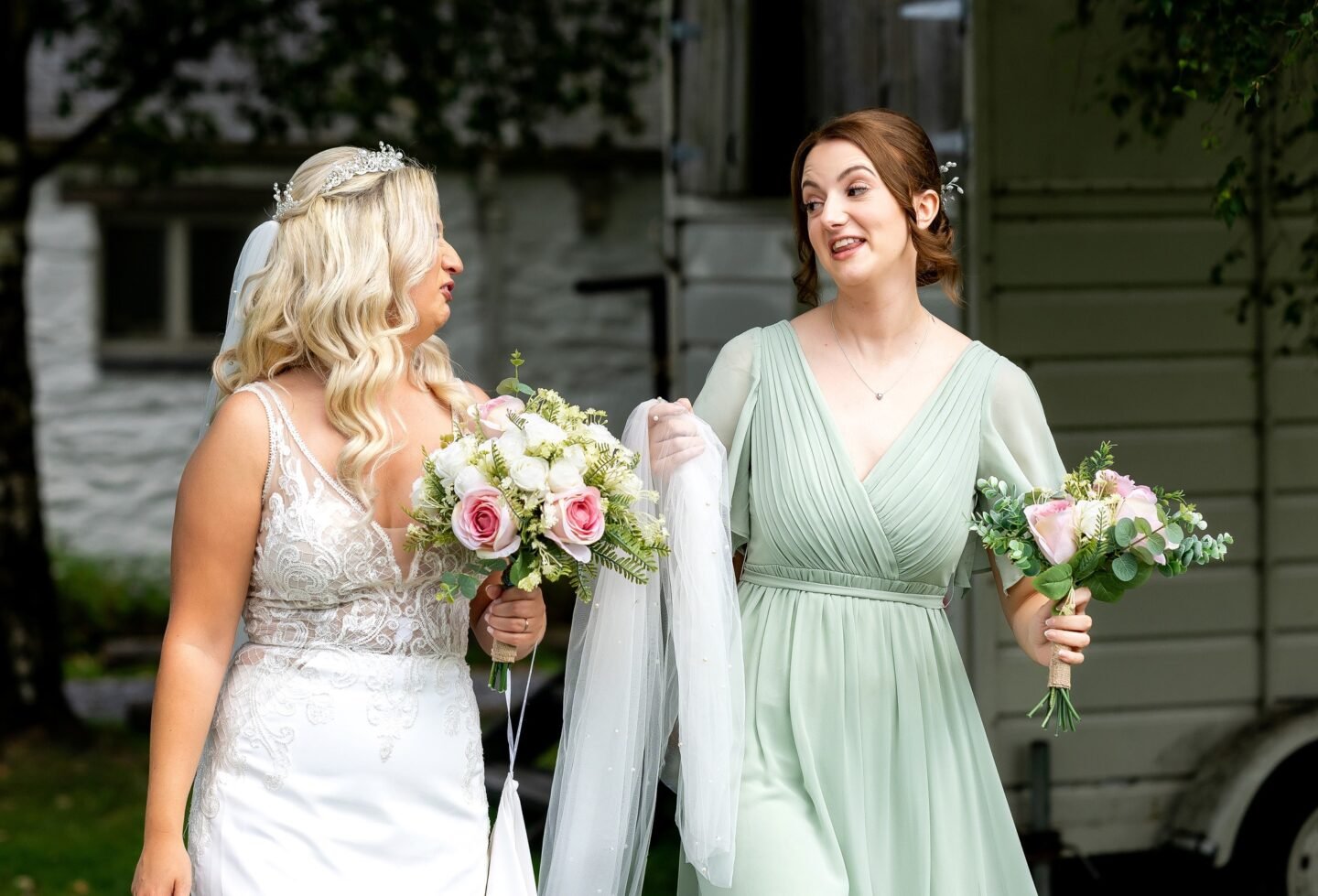 Nestled in the heart of the breathtaking Conwy Valley, Hafod Farm provided the perfect backdrop for Tina and Gareth’s relaxed, countryside wedding. For a North Wales wedding photographer, this venue is a dream come true. With its Grade II listed buildings, red brick barns, and panoramic views of the Snowdonia foothills, it offers a setting that is both historically charming and effortlessly cool.